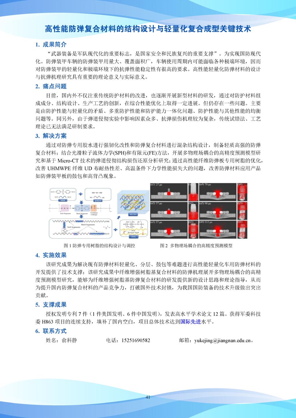 科研成果-高性能防弹复合材料的结构设计与轻量化复合成型关键技术