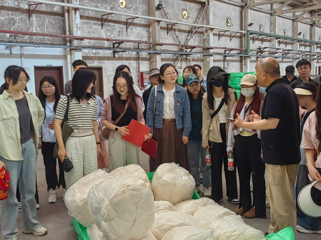 协新董事会秘书储雄国带领参观企业历史长廊,一张张老照片再现一代代纺织人深耕广种、砥砺奋进的峥嵘岁月,师生党员共同追忆、感悟企业与时俱进、革故鼎新的创新精神,增强江南纺织人实业救国的历史认同。走进生产车间,感受行业生产加工的实情实景,学习企业转型升级的新做法、新工艺、新技术,继续发挥纺织领域“一盘棋”的优势,增强研究生党员对科研成果转化落地的进取观念,以学科所学赋能纺织行业高质量发展。
