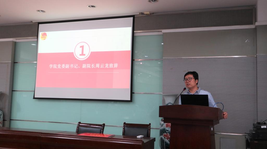 仪式开始,学院党委副书记周云龙为本次风采展示会致辞,周书记在讲话中提到2018年是重大改革、关键性改革的突破年,我院共青团2018年的一切工作,都要围绕共青团的“先进性”这一战略定位开展。周书记向在座的青年团员提出了几点要求:一、要求青年团员加强理论学习,不忘初心跟党走;二、希望同学们增强团员先进性;三、希望团支部书记能够带动基层团支部开展团员先进性建设。