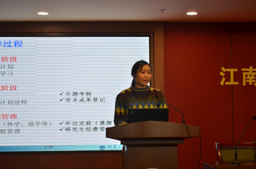 11月3日,江南大学第七届研究生导师学校在图书馆五楼报告厅召开。纺织服装学院导师、学校拟申报硕士研究生导师、各学院研究生秘书和研究生院全体人员参加了本次会议培训。培训会由研究生院院长助理姚文生老师主持。