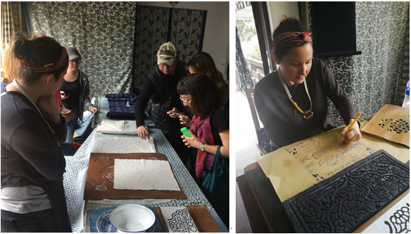 加州大学戴维斯分校研究生体验蓝印花布刻版技艺