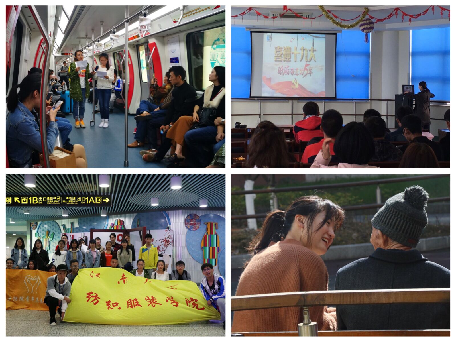 广泛开展宣讲活动。10月22日,“同路人”党的十九大精神宣讲团走进地铁,以朗诵、演讲等形式,宣讲党的十九大精神;11月5日,学院青年志愿者协会来到无锡市太湖养老中心,用无锡方言传达了党的十九大报告《决胜全面建成小康社会夺取新时代中国特色社会主义伟大胜利》的主要精神内涵……系列宣讲活动,激发“同路人”坚定道路自信、理论自信、制度自信、文化自信,把思想和行动统一到实现新时代中华民族伟大复兴中国梦的目标上。