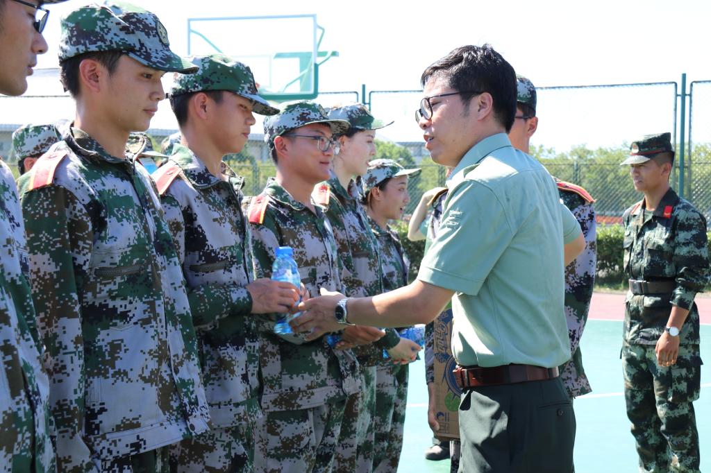 炎炎烈日,院领导送来关怀;殷殷真情,参训学子戎装相迎,士气高昂。慰问活动给辛苦军训的学生带来了一丝夏日的清凉,同时也提高了他们努力军训的积极性,为纺服学院参训学生高标准、高质量完成军训任务奠定了坚实的基础。