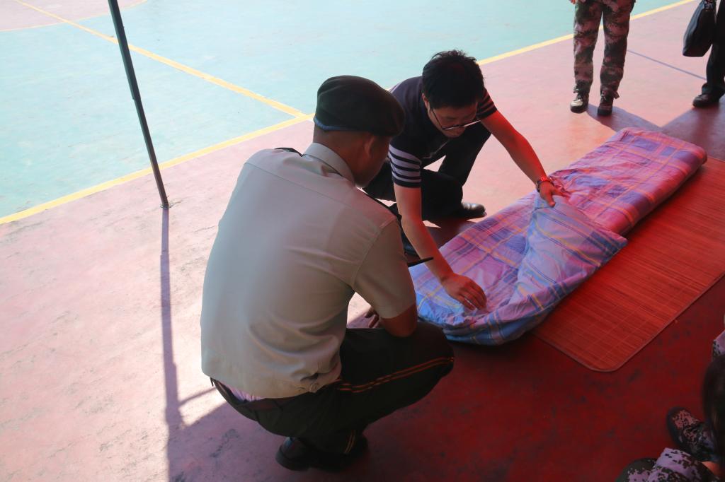 军训场地上,纺织服装学院所在的八连排列整齐,口号响亮,步伐一致,动作紧凑,以高度的热情和认真的态度接受周云龙副书记的检阅。看到参训学生昂扬的斗志和整齐的队列,周云龙副书记对同学们刻苦地训练给予高度的评价和充分肯定。在营长和带训辅导员的陪同下,周云龙副书记慰问伤病员,鼓励他们在平时要锻炼身体,并为参训同学服务。周云龙副书记还在个别排进行了讲话,结合自己的军训经历,鼓励大家认真训练,并希望同学们“坚持坚持再坚持”,克服困难,保持高昂的激情继续进行接下来的军训活动,并再次表扬了学院参训学生顽强的意志力和极高的集体荣誉感,对辛勤训练学子们的教官们致以敬意。慰问完学子们后,周书记与教官进行了亲切交流,并对承训部队官兵的辛勤付出表示感谢。