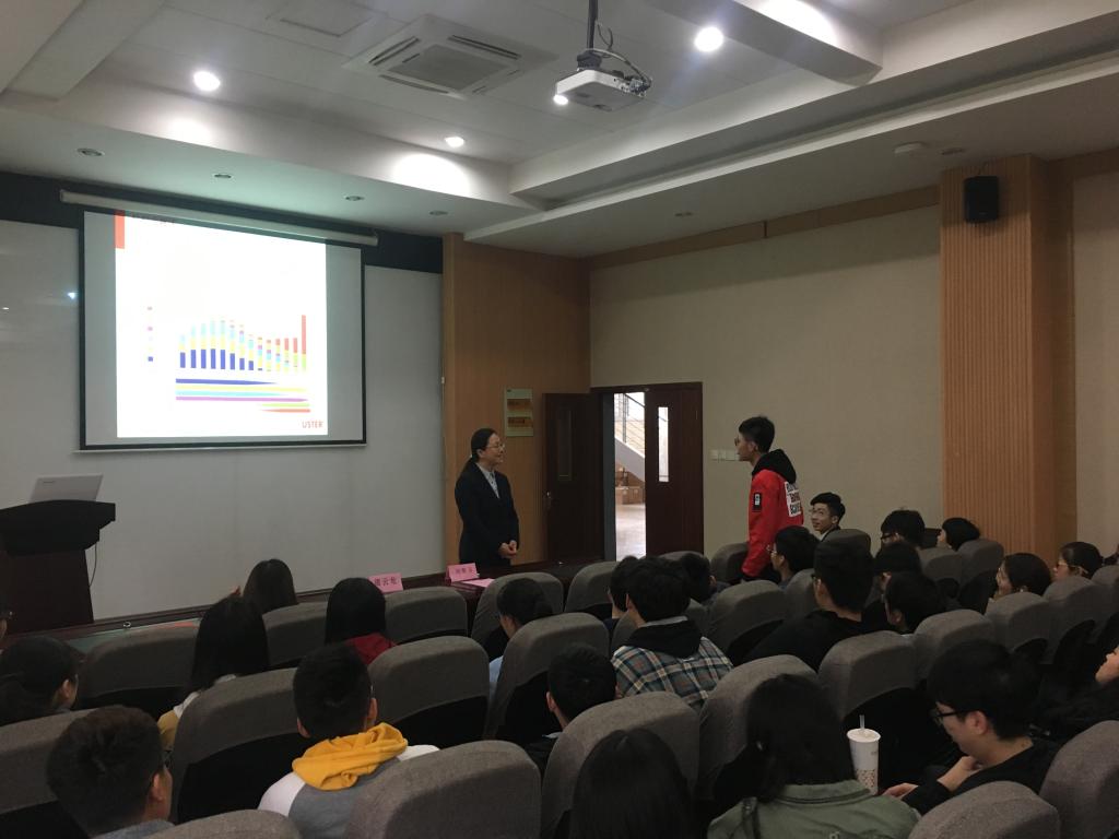 在颁奖典礼结束后,刘智玉经理为大家带来了“纺织质量管理与检测技术”专题学术讲座,从乌斯特公司发展历史延伸到对纺织行业发展及对未来展望,以大数据的理念展开国内外纺织品织造转移趋势,并对当前世界最先进的纱线检测技术等做出详细的解说,鼓舞同学们树立信心,以饱满的热情和积极的心态学好专业知识。