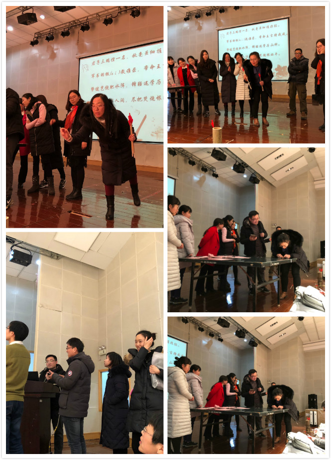 伴随着音乐的响起,各种迎新活动节目纷纷亮相,近150名教师参加了学院“迎新年共谱纺服新华章”展风采活动。活动分为竞答赛、争霸赛一、争霸赛二、争霸赛三、掼蛋比赛等6个项目。此时此刻,回首过去一年,有太多心声需要倾吐,有太多的激情需要释放。老师们暂且放下了一切,全身心地参与到各个活动中,老师们个个身怀绝技,不时掀起一个又一个高潮;简朴的会场上到处洋溢着欢乐的气氛,每个人的脸上都绽放出幸福的笑容。