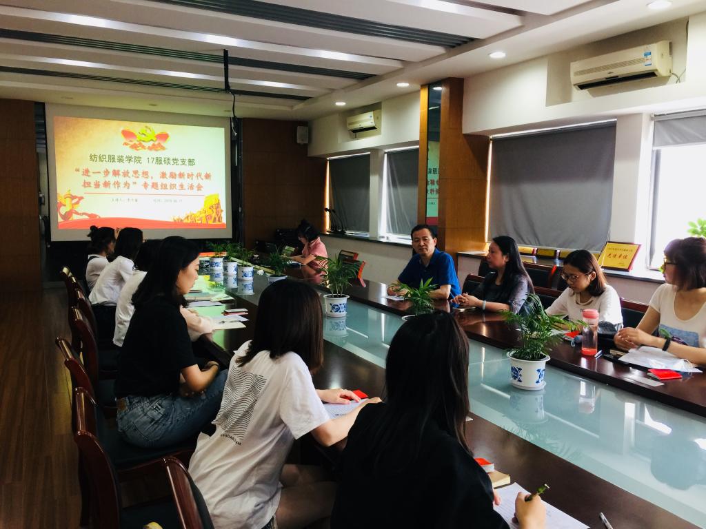 6月21日上午,2017级服装硕士党支部召开“进一步解放思想,激励新时代新担当新作为”专题组织生活会,校招生就业处处长崔宝同、院党委书记张菁与17服硕支部党员共话解放思想,以及新时代党员的使命与担当。