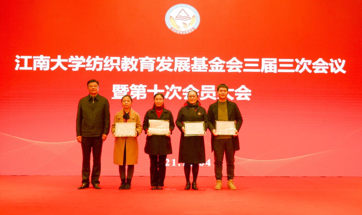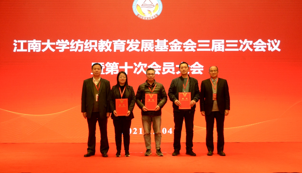 大会对2021年新增的16名新会员颁发了会员证书,宣布了新增的副理事长、常务理事、理事名单,对2021年度杰出会员颁发了纪念奖杯;根据《江南大学纺织教育发展基金会奖学奖教实施条例》,对2021年度表现突出的4位教师、35位学生进行表彰和奖励。新会员、杰出会员以及获奖师生代表进行了大会发言。大会还对基金会奖学奖教实施条例修订的情况进行了说明与表决。