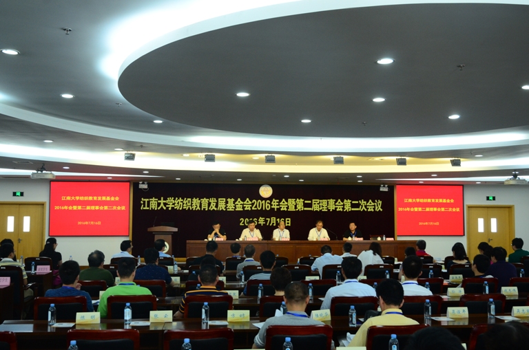 7月16日,江南大学纺织教育发展基金会2016年会暨第二届理事会第二次会议在学校图书馆五楼隆重召开,会议由江苏汇鸿股份有限公司原董事长、基金会副理事长蒋金华先生主持。理事长高卫东、副理事长香港肇丰投资有限公司董事长高春和,无锡鼎佳纺织品有限公司董事长吴刚,苏州安派精密电子有限公司总经理邵太春,江南大学针织技术教育部工程研究中心主任蒋高明以及一百多名会员及获奖师生出席了本届大会。