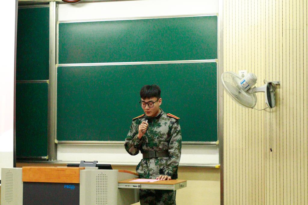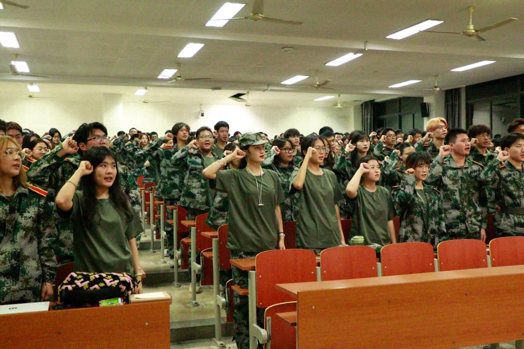 轻化2201班赵勃涵作为参训学生代表发言。他表示将和所有参训同学一起服从命令、听从指挥,认真学习、刻苦训练,战胜困难、突破自我,以振奋的精神状态接受军训的锤炼,出色地完成训练任务。会议最后,赵勃涵带领全体参训学生集体庄严宣誓,在同学们铿锵有力的誓言中,本次军训动员大会圆满结束。