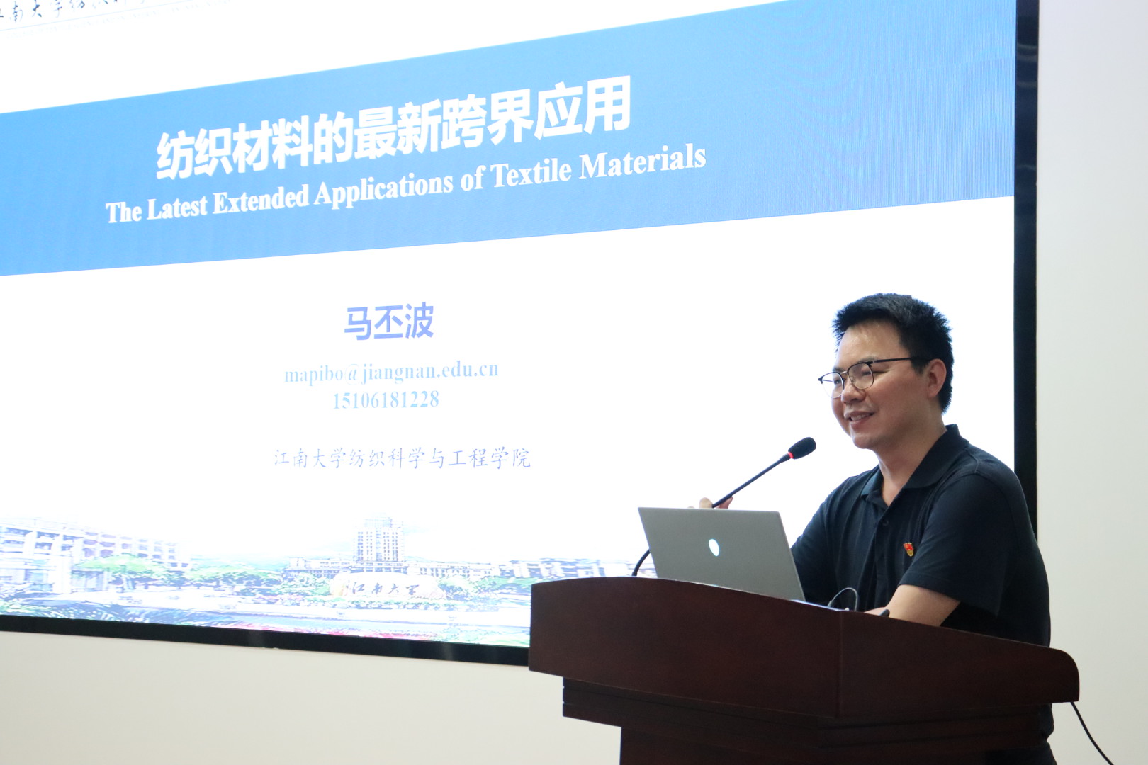 接着,bwin必赢中国官网副院长马丕波进行了专业学术讲座。马丕波教授以“纺织材料的最新跨界应用”为主题,结合个人求学经历,生动诙谐地向同学们介绍了纺织工程和轻化工程专业、中国纺织工业的现状以及学院在研的各类纺织结构织物。他指出,纺织行业已不是传统的纺纱织布,而是在与多学科交叉融合的过程中,朝着“面向世界科技前沿、面向经济主战场、面向国家重大需求、面向人民生命健康”的方向发展。除此之外,他还向学生们介绍了几个学生培养案例,激励着同学们向更高更远的方向奋进,纺织未来有无限可能。
