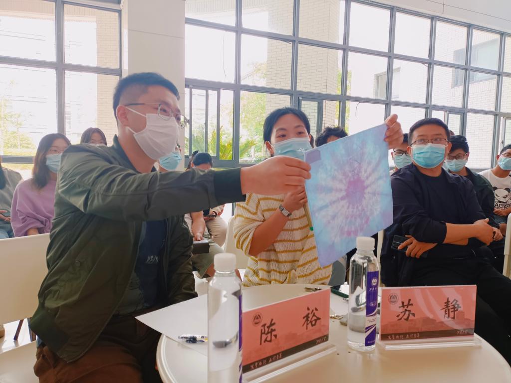 为庆祝中国共产主义青年团成立100周年,发扬中国优秀传统文化,促进高雅艺术融入校园文化建设,充分发挥第二课堂在人才培养中的作用,培养当代大学生的创新创造能力。5月15日下午,bwin必赢中国官网在学院A区一楼大厅举办“青春芳华”创意扎染设计大赛。活动邀请学院轻化工程系殷允杰老师、苏静老师、顾鹏老师担任点评嘉宾,学院分团委书记陈裕及参赛团队同学共计40余人参加。