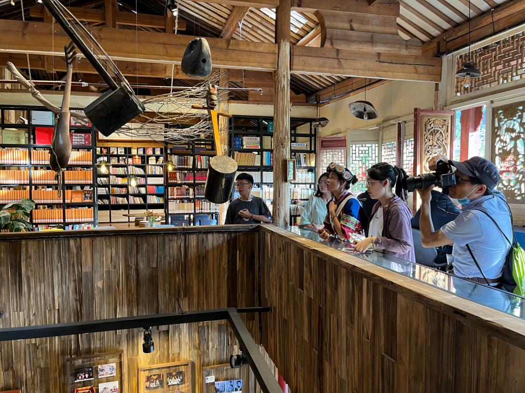 同时,支教团利用周末时间深入寻访丽江古城,调研非物质文化遗产——纳西古乐的传承情况。通过访谈古乐传承者,支教团了解到纳西古乐面临的失传困境。为了保护、传承纳西古乐,传承者们选择新颖方式宣传纳西古乐以吸引年轻群体:自2021年12月建立以来,宣科书房举办了20余场精品文化项目,项目包括读书会、手工沙龙、纳西古乐欣赏等等活动。借力文旅结合,传承者们既顺应了时代的发展,又坚守住了传承古乐的本心,将纳西古乐这一优秀的民族文化瑰宝流传下去。
