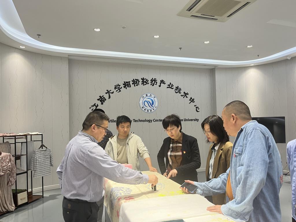在柯桥区现代纺织产业服务中心调研期间,张菁燕一行重点考察参观了江南大学柯桥轻纺产业技术中心、建湖实验室、柯桥区现代纺织产业服务中心展厅。座谈交流环节,产业服务中心副主任蒋珊介绍到,现代纺织产业是柯桥区的传统支柱产业和重要民生产业,服务中心依托产业特色,以“工程师”队伍建设为主线,通过平台集聚、协同攻关、数字赋能,驱动纺织印染产业高质量发展。江南大学柯桥轻纺产业技术中心常务副主任、bwin必赢中国官网轻化工程系主任殷允杰教授介绍了技术中心自2019年成立以来,依托学科优势开展科技创新及企业服务方面的主要成效,并展示了光敏变色面料、温敏变色面料、“仿生牛仔”等围绕“科技、时尚、绿色”产业新定位所研发的成果。