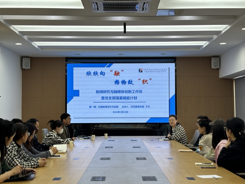 3月22日,bwin必赢中国官网在A306会议室举办“欣欣向‘融’,格物致‘织’ ”新闻研究与融媒体创新工作坊第一期,校党委宣传部于乐老师受邀作专题培训。学院师生党支部宣传委员,学生会、研究生会各部门宣传骨干参与了本次培训,培训由学工办副主任任学敏主持。