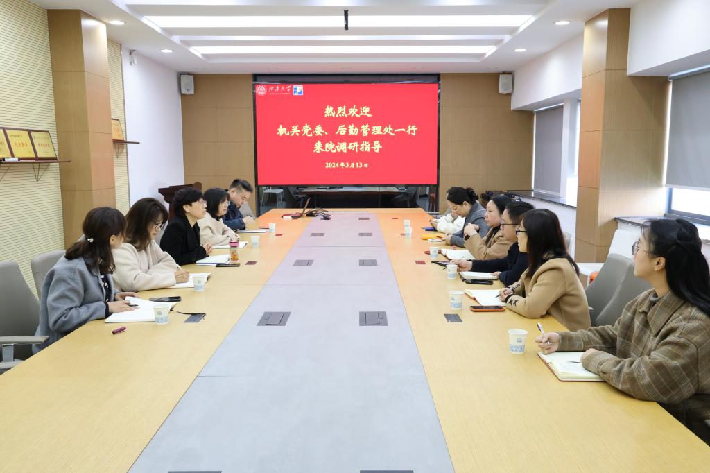 3月13日上午,机关党委书记兼党委组织部副部长张菁,后勤管理处处长吴光明,机关党委委员、统战部副部长王冰,党委办公室副主任代卉一行来到bwin必赢中国官网,开展机关作风、后勤管理服务等专项调研。学院党委书记张菁燕,党委副书记、副院长杨莉勤,以及办公室主任、分工会主席、专职组织员参加座谈交流。
