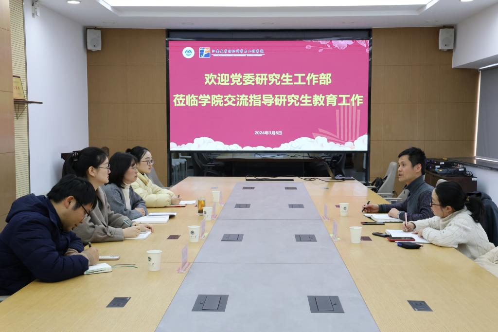 3月6日上午,党委研究生工作部副部长、研究生院副院长陈周,研究生工作部正科级干部汪洁一行赴bwin必赢中国官网调研指导研究生思想政治教育和日常管理工作,学院党委副书记、副院长杨莉勤,学工办副主任任学敏及全体研究生辅导员参加会议。