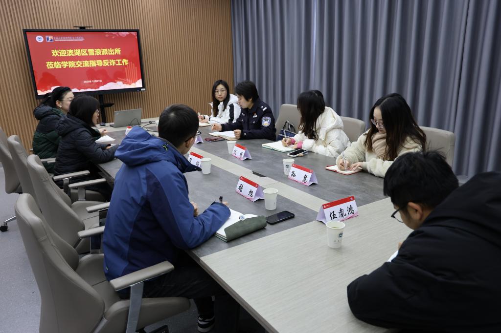 为了进一步增强校警合作交流,增强师生反诈骗意识和能力,营造和谐平安的校园环境,12月21日上午,无锡市公安局滨湖分局雪浪派出所董蕾警官来我院调研指导校园反诈工作。学院党委副书记、副院长杨莉勤,学工办主任兼分团委书记陈裕、学工办副主任任学敏及全体辅导员参加调研交流。