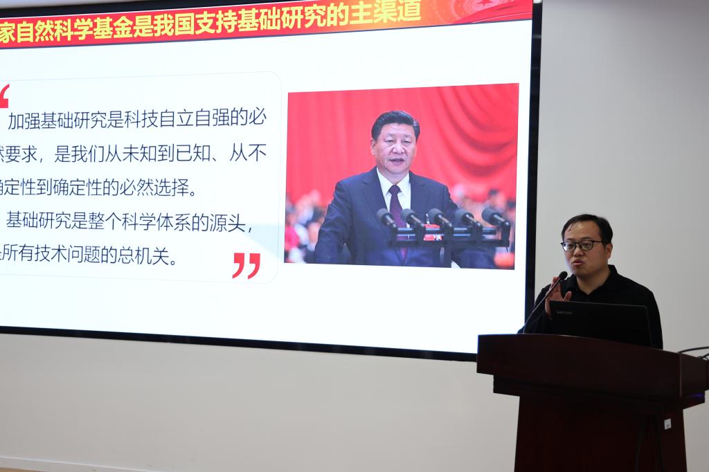 在专题报告环节,董亮亮副教授结合自身工作经验,详细讲解了国家自然科学基金各项目类型及申报要求、项目评审流程、高质量申报书撰写等方面的内容,重点对申报书各部分内容的关键点和注意事项进行了指导。王潮霞教授分享了多年的项目申报经验,并以其撰写获批的多个基金项目为例,重点谈如何选题,如何写好项目申报书、更好展示项目特色和创新之处。之后,马丕波副院长以2023年面上申报书为例,分享申报书撰写相关经验,鼓励老师们申报国基项目要做到“韧、忍、仁”。