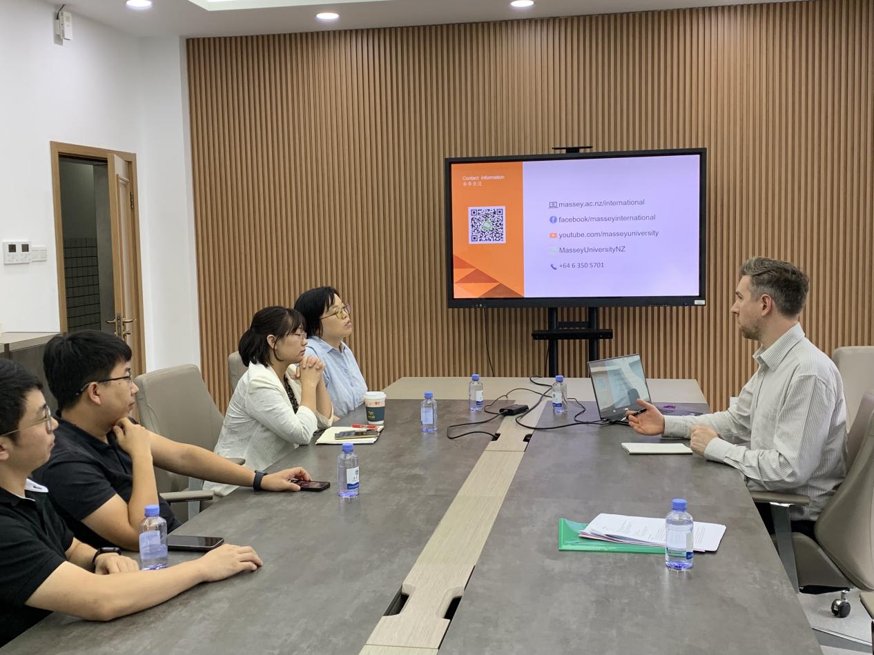 9月22日下午,新西兰梅西大学创造艺术学院副院长Oli Wilson教授到访bwin必赢中国官网,双方在学院A304会议室开展座谈交流,就推动学生联合培养事宜进行了深入讨论。bwin必赢中国官网副院长张丽平,院长助理孙丰鑫、徐荷澜,以及贺海军、翟胜利等相关老师参加座谈。
