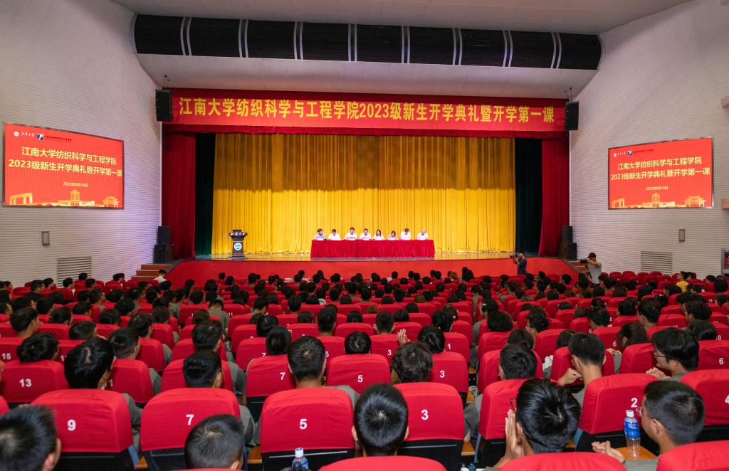9月10日晚,bwin必赢中国官网2023级新生开学典礼暨开学第一课在文浩馆观众厅顺利举行。bwin必赢中国官网院长付少海,党委副书记、副院长杨莉勤,副院长马丕波、张丽平、张典堂,纺织工程系主任肖学良,轻化工程系主任王平,实验室主任晋阳,2023级新生班主任、行政管理老师、辅导员及2023级本硕博新生出席活动。典礼由马丕波主持。