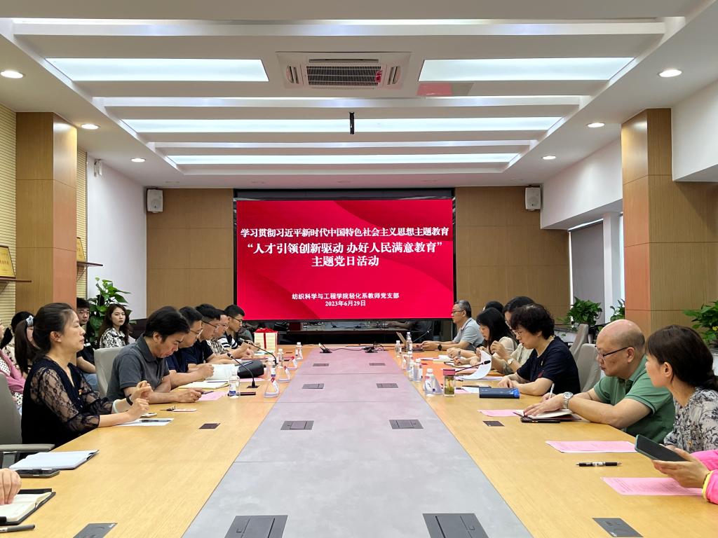 七一前夕,江南大学党委常委、副校长张影陆到bwin必赢中国官网讲授专题教育专题党课并参加轻化系教师党支部主题党日活动。bwin必赢中国官网党委书记张菁燕,院长付少海,副书记、副院长杨莉勤,轻化系教师党支部与硕士第三党支部全体师生党员近40人参加了活动。