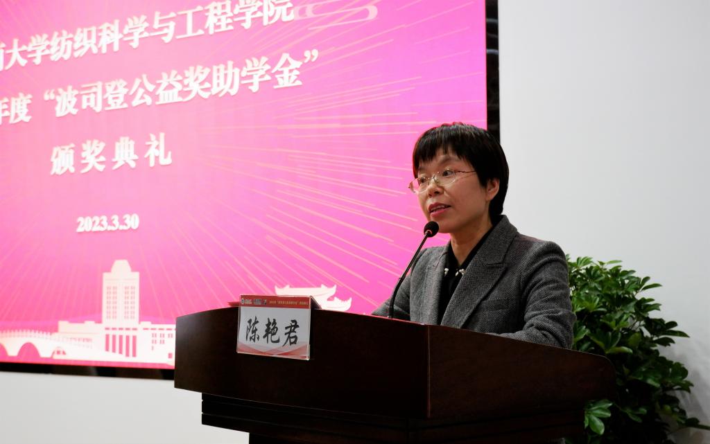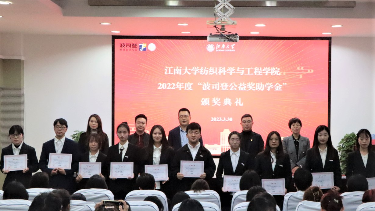 典礼最后,bwin必赢中国官网党委副书记陈艳君发表了总结讲话。陈书记对波司登集团长期以来支持江南大学教育事业的发展和纺织服装行业人才的培养表示衷心的感谢,对获奖同学表示祝贺。同时,陈书记也提出了三点期望:第一、明心知往,力行求至;第二、明德敏学,穷高极远;第三、明理善思,责有攸归。陈书记希望同学们将这份爱心与责任传递下去,秉承“博学慎独,经纶天下”的院训,弘扬波司登“温暖全世界”的情怀,让理想成为新时代征程的航灯,让奋斗成为洋流中的基石,让自己成为青春路上的掌舵人!