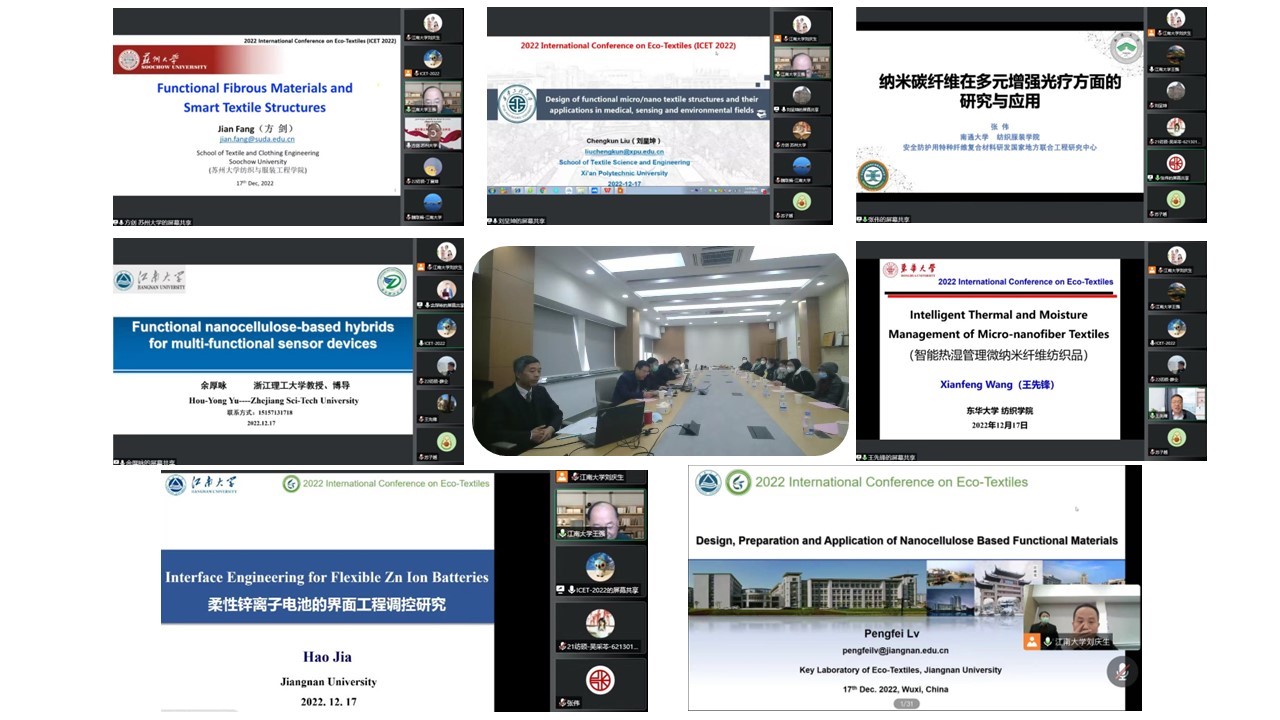 2022年12月17日,2022年生态纺织国际会议(The 2022 International Conference on Eco-Textiles)在江南大学成功举行。会议以线上线下相结合的方式进行,海内外300余人参加了会议。该会议由江南大学生态纺织技术国际联合实验室发起,bwin必赢中国官网和生态纺织教育部重点实验室主办,“一带一路”国际纺织科技联盟培训中心协办,开幕式由生态纺织教育部重点实验室主任、江苏省国际化品牌专业(纺织工程)负责人魏取福教授主持。