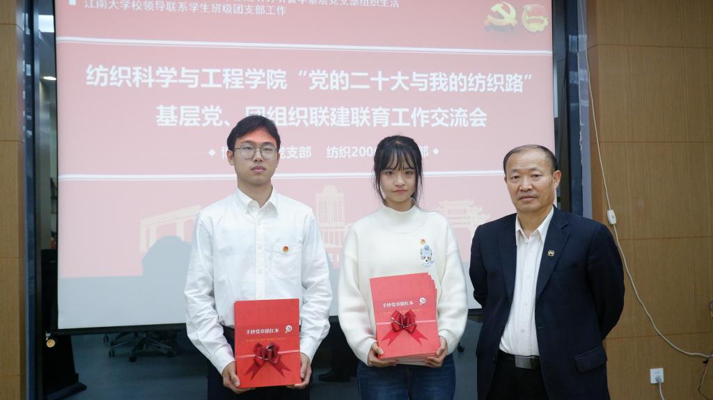 在“党的二十大与我的纺织路”基层党、团组织联建联育工作交流会中,博士第二党支部组织委员陈裕从活动主题、活动形式、活动内容、预期效果等方面介绍支部学习贯彻党的二十大精神活动方案,力求在支部内外形成人人讲党课、个个谈心得、处处是学堂的思想氛围,并推动开展特色实践教育活动,注重实效发挥,知行合一,学以致用。支部党员武双林同学分享了《这就是中国纺织》学习心得体会,围绕“聚焦高质量发展”、“推进共同富裕”、“在绿色中转型”、“坚持文化自信”、“科教兴国”等方向,讲述了作为纺织科技青年该有的奋斗姿态和肩负的重大使命。纺织2006班团支书黄子宁对班级团支部建设及活动开展及计划进行汇报,总结班级团员青年在社会实践和文体科创活动中的收获与感悟,她倡议同学们应关注祖国发展和家乡变化,以劳动实践创造价值,扎实走好江南纺织青年的纺织路。纺织2006班闽江学院的交流学生们从“闽江闽水物华新”、“如诗如画江南景”两部分,讲述习近平校长与闽江学院、他们与江南大学的机缘故事,并表示要将人生选择与中华民族伟大复兴中国梦结合起来,将纺织学识、未来发展、职业规划结合国家所需,真正做到适应社会需要。