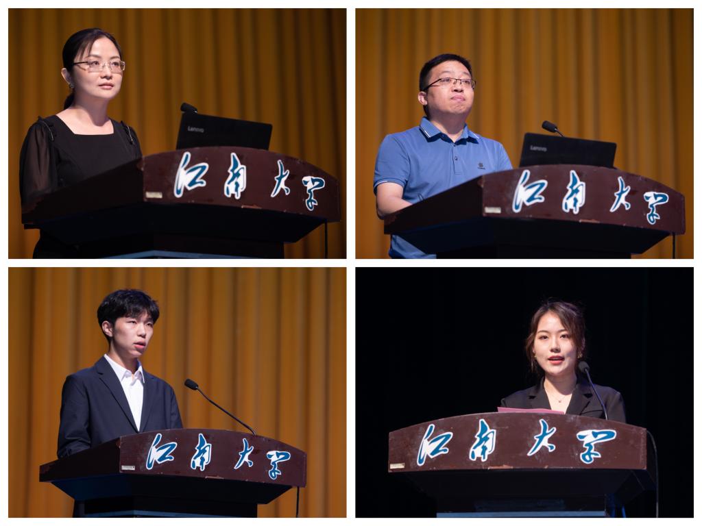 副院长黄锋林宣读了2022级本科新生班主任、副班主任聘任结果及名单,院领导为班主任和副班主任颁发聘书。纺织2006班胡紫瑞、轻化2202班成佳哲和22级研究生原韵分别代表本科生老生、本科生新生和研究生新生发言。
