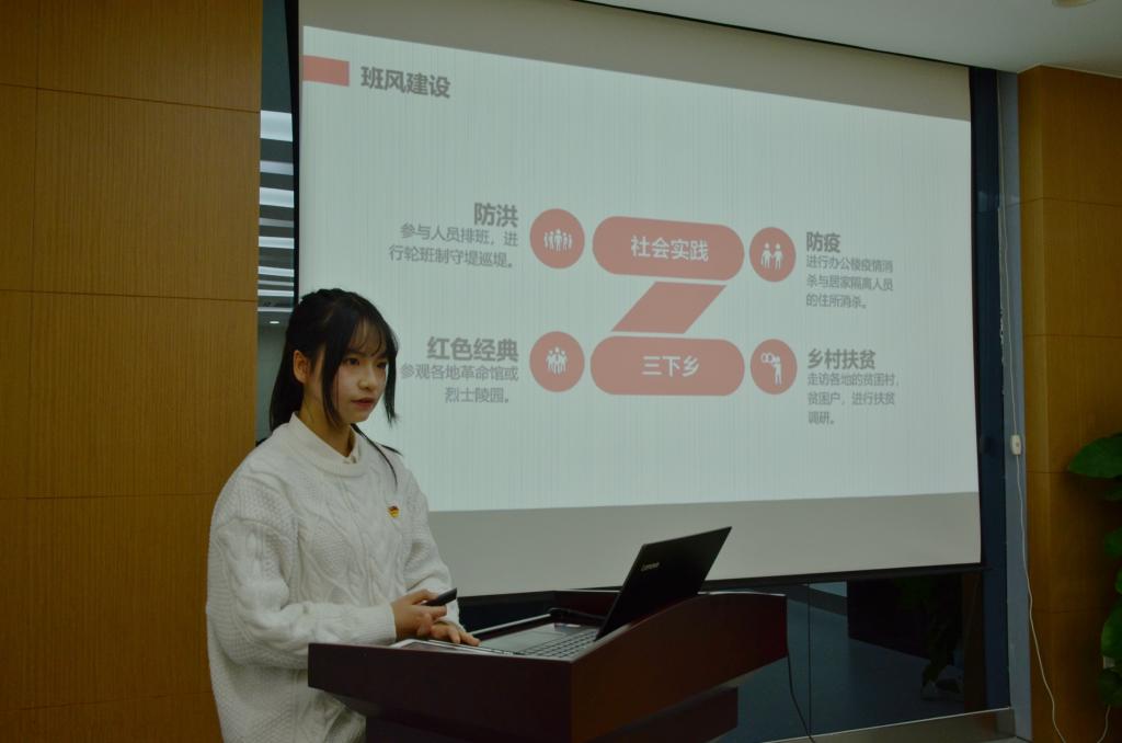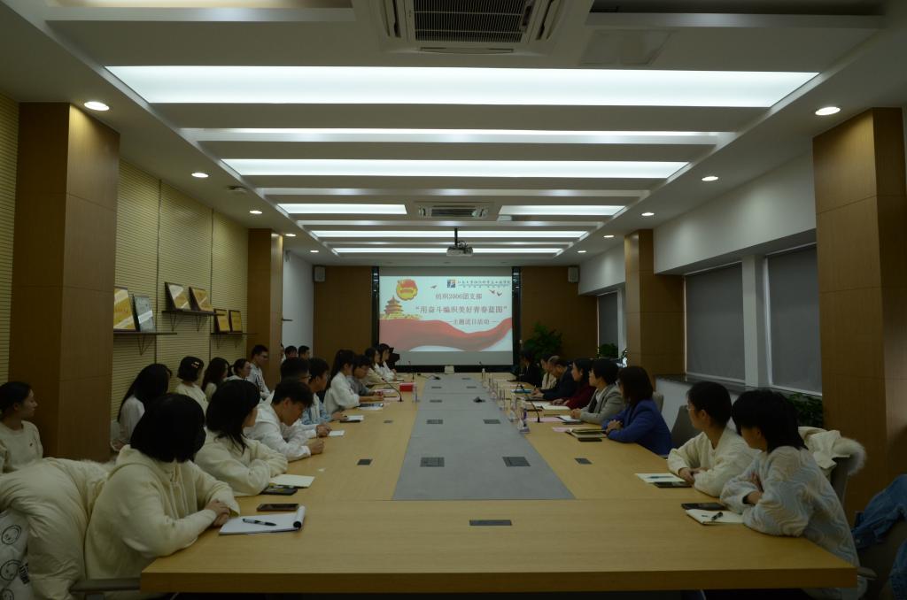主持人首先介绍了本次主题团日活动开展的背景情况:把握契机,开展系列主题教育;榜样选树,弘扬向上向善力量;从严治团,建设活力团学骨干。随后团支部书记黄子宁从学风引领、班团建设、志愿服务三个方面进行了精彩的支部风采展示,班级优秀学生代表至善生张鑫瑶分享个人学习方面的宝贵经验。整个展示环节从四个方面分享了纺织2006班进入江南大学446天中发生的人和事,向与会领导老师展现出纺织2006班团结友爱、勇往直前的精神风貌和江南纺织学子青春洋溢、斗志昂扬的创新活力。顾校长就班级团支部一年多来取得的成绩点赞认可,对班级未来的发展建设给予深切厚望。