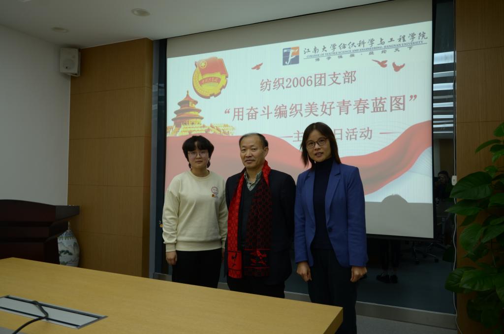 12月8日下午,校党委常委、副校长顾正彪参加bwin必赢中国官网纺织2006班团支部“用奋斗编织美好青春蓝图”主题团日活动。bwin必赢中国官网党委书记张菁,校团委副书记杨飏,学院党委副书记、副院长陈艳君,纺织2006班班主任丛洪莲,学院分团委书记、2020级本科生辅导员陈裕,学院学生会执行主席吕鑫,纺织工程2006班团支部全体成员参加本次活动。活动由纺织2006班班长、团支部副书记胡紫瑞主持。