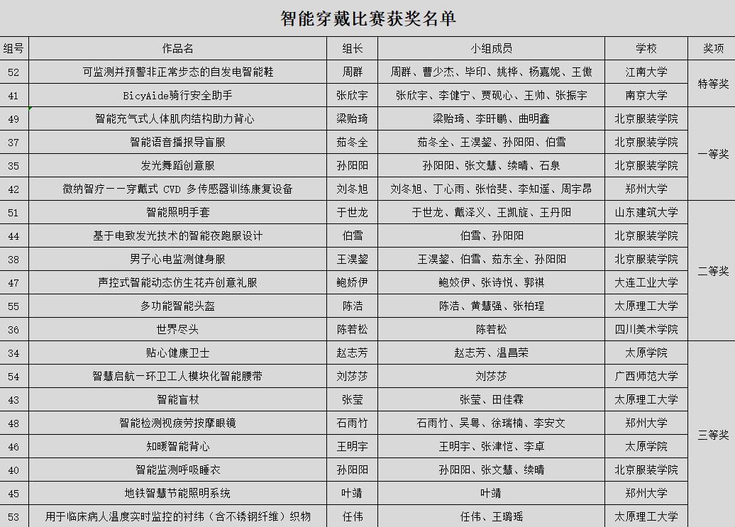 纺织学子在第二届中国大学生智能照明和智能穿戴创新创业大赛中获奖