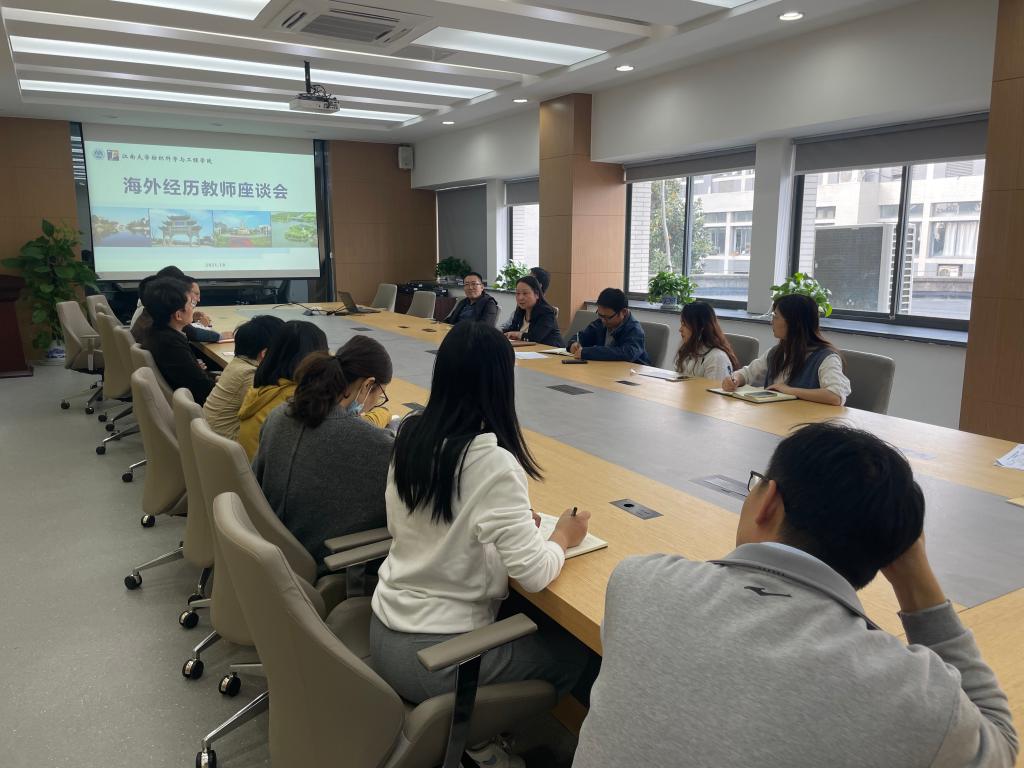 10月27日,bwin必赢中国官网留学归国教师座谈会在纺织楼A306会议室召开。学院党委书记张菁、副院长刘庆生出席了会议,来自教学科研一线的15位留学归国青年教师代表参加了座谈。会议聚焦黄大年精神学习、留学归国教师思想动态、青年教师未来发展规划、学院国际交流工作等主题,与会教师展开了深入交流。