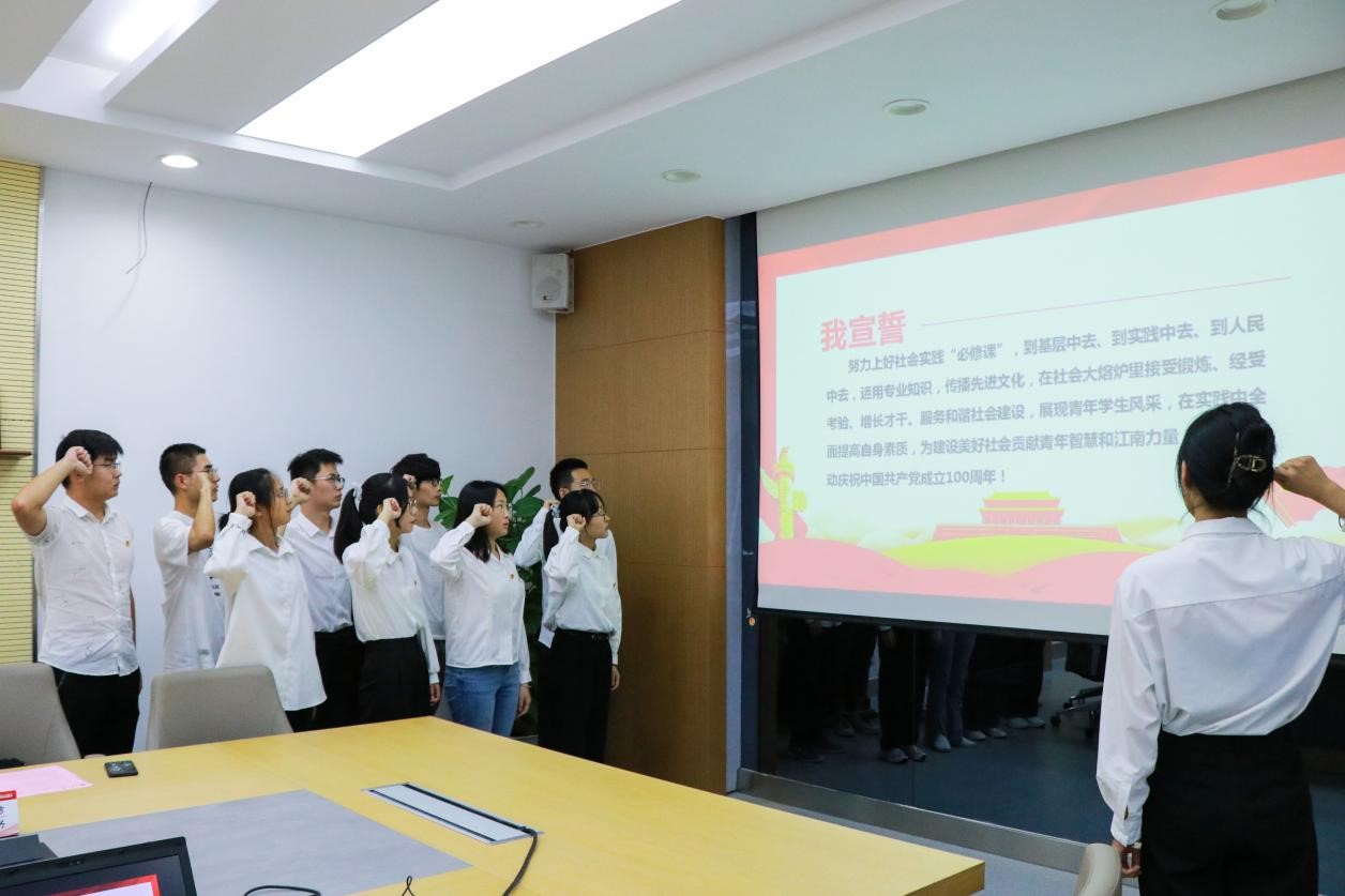 仪式最后,院学生会执行主席吕鑫带领社会实践重点团队代表进行出征宣誓。2021年暑期社会实践的号角已经吹响,踌躇满志的江南纺织青年即将投入到火热的社会实践活动中去。相信bwin必赢中国官网社会实践团队一定能继承光荣传统、不负众望,建新功立新业,在服务社会和服务人民的活动中,书写学院大学生暑期三下乡社会实践活动的新篇章,用实际行动庆祝中国共产党成立100周年。