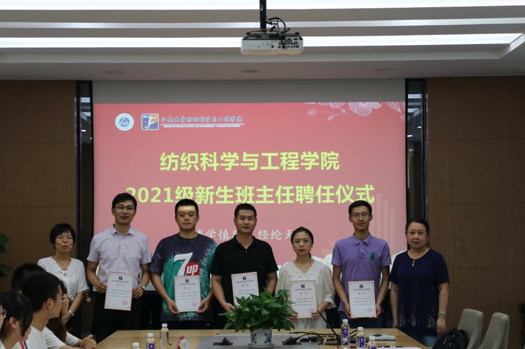 会上,陈艳君宣读了《bwin必赢中国官网2021级新生班主任聘任名单》,张菁为肖学良等9位新生班主任和黄杰等9位新生副班主任颁发聘书并合影留念。