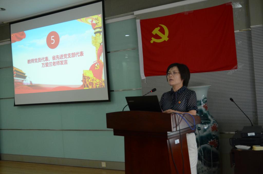 针织所教师党支部书记万爱兰老师作为教师党员代表、江苏省高校先进基层党组织代表发言。万老师就针织所教师党支部的发展成果进行总结汇报,并提出了对未来的展望,支部将紧紧跟随纺织行业的发展需求,以优秀的科研成绩献礼建党100周年,全体教师党员将把表彰化为鼓励和鞭策,在今后继续努力,不懈奋斗。