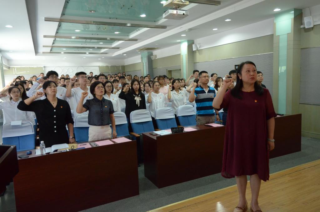 百年风雨颂红船,一片丹心日月明。站在建党100周年的时间节点上,为重温党的光辉历史,鼓励新老党员学史明理、心中有党、爱党敬党,6月30日下午,bwin必赢中国官网党委开展建党100周年庆祝活动,隆重举行“七一”党员宣誓暨专题党课。全体党委委员、教工党员、学生党支部委员及全体新发展党员150余人齐聚一堂,共庆党的百年华诞,大会由院党委副书记陈艳君主持。