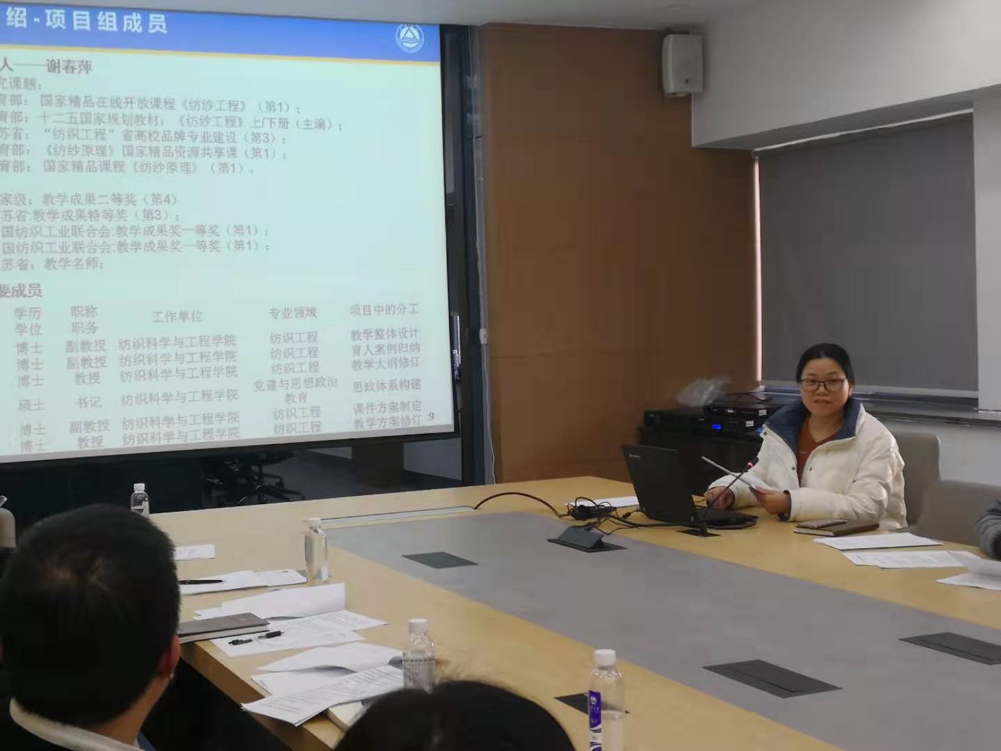 本次会议,与会人员就《bwin必赢中国官网课程思政建设方案》进行了充分地讨论,各系部教师、课程负责人等对建设方案、具体落实等方面提出了许多宝贵建议。此外,会议还听取了杨瑞华老师《纺纱工程》、张丽平老师《染料化学》的校课程思政教改项目进程汇报。