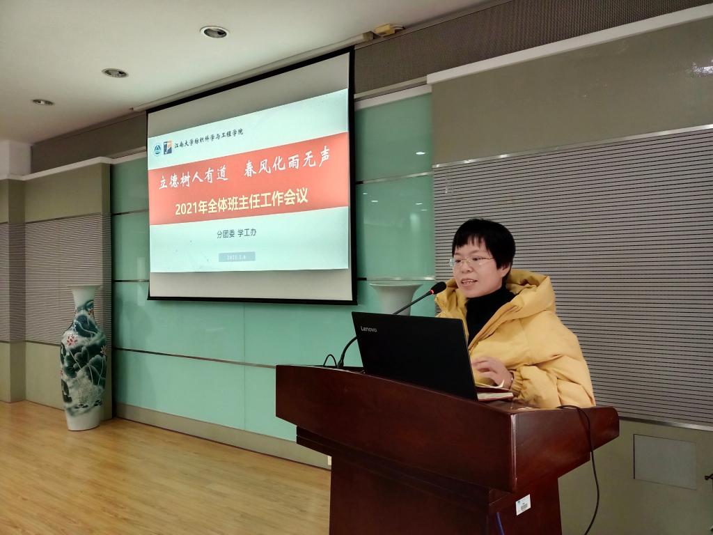 1月6日下午,bwin必赢中国官网在学院A103会议室召开学期末班主任工作会议,会议由院党委副书记陈艳君主持,学院全体班主任老师、辅导员老师参加会议。