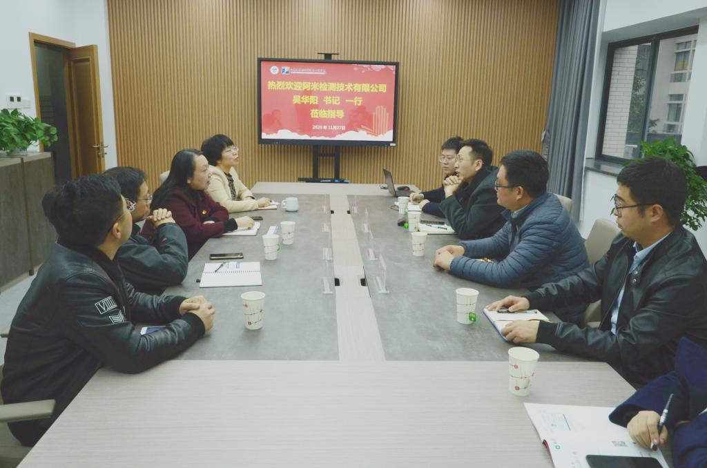 11月27日下午,北京航天计量测试技术研究所阿米检测技术有限公司书记、副总经理吴华阳一行5人来院交流。院党委书记张菁,党委副书记陈艳君,智能纺织新材料研究室邱华教授及社会资助条块辅导员陈裕参加交流座谈会。