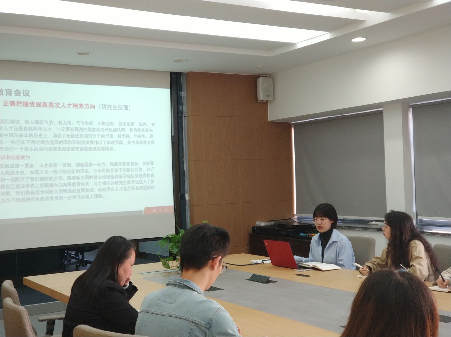 院党委张菁书记在最后对本次党课进行了点评与指导,同时对大家提出了几点要求与希望。一是希望要从国家和人民的期待规划研究生的未来。研究生教育始终与国家民族发展同呼吸共命运,是我国建设创新型国家的重要力量,是实现民族复兴中国梦的重要支撑;;二是要从研究生的含义和培养规律来做好身份的转换和自我定位。希望作为二年级研究生要更加明确自我定位的转变,增强创新意识,在自己的科研领域深入研究;三是要在研究生教育培养的过程中,明确主题意识和责任意识。强调要明确学术行为的规范性,实验过程有痕迹,实验数据的处理要科学严谨,避免学术不端的行为发生。