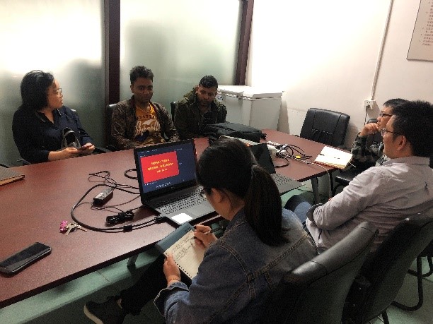 10月19日,bwin必赢中国官网的留学生教学、管理工作座谈会在bwin必赢中国官网举行。bwin必赢中国官网副院长黄锋林、刘庆生,纺织工程系系主任傅佳佳,留学生班主任柯莹、徐荷澜、崔鹏,以及在校留学生代表卡萨那和萨拉查参加了座谈会