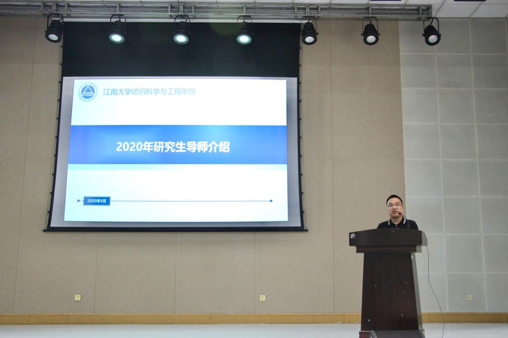 院长付少海教授向同学们介绍了bwin必赢中国官网自建立以来的发展变革,并着重介绍了各个学科方向、各团队的科研成果以及获得的各项荣誉。不仅如此,付院长还就本学院学科情况、国际交流现状、人才培养质量、奖助学金以及纺织教育发展基金会等情况进行了详尽的介绍。同时付院长也告诫2020级研究生新生,研究生应以科研学业为正,在与导师保持良好的沟通,保持健康体魄的同时,也要保持阳光向上的心理状态。