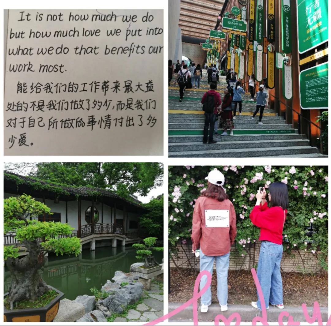 自己的爱好要坚持到底。书籍、运动与旅行是我生命中不可缺少的部分。书,带给我知识和力量,在图书馆这个第二世界里,我借阅了百余本图书,从期刊学报中了解前沿,在小说散文里感悟酸甜,做书摘,品自在。每周我会运动三次以上,在奔跑中享受自由与活力,慢慢爱上大汗淋漓的感觉。我是个憋不住的人,总喜欢出去逛。周末假期时,会和三两个好友去外面走走,小到无锡的巷弄菜市,大到买张车票,来场说走就走的跨省旅行。