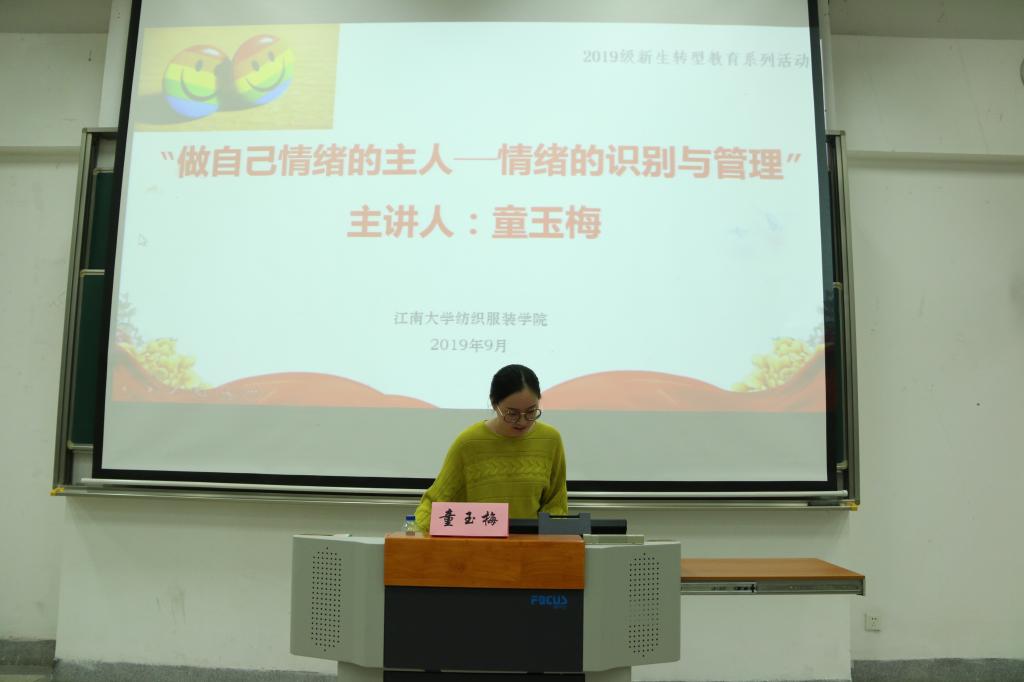 2019923日晚,纺织服装学院2019级全体本科生、研究生在第二教学楼2A127参加了大学生心理健康讲座。江南大学心理健康中心国家二级心理咨询师童玉梅老师围绕“做自己情绪的主人——情绪的识别与管理”这一主题开展讲座。