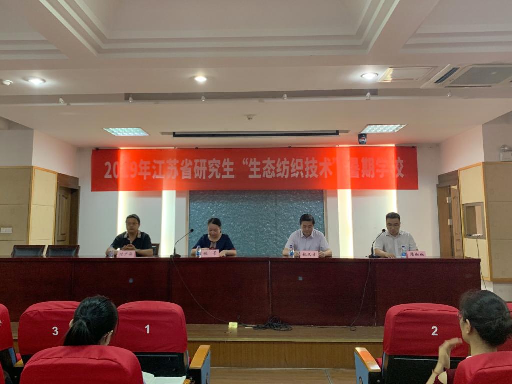 2019年8月16日上午8时,江苏省研究生“生态纺织技术”暑期学校开班仪式在江南大学文浩馆205会议室顺利举行。出席仪式的有研究生院副院长姚文生老师、纺织服装学院党委书记张菁老师、纺织服装学院院长付少海教授、纺织服装学院副院长潘如如教授,还有来自东华大学、江南大学、天津工业大学、苏州大学、浙江理工大学、武汉纺织大学等16所高校的80位学员。