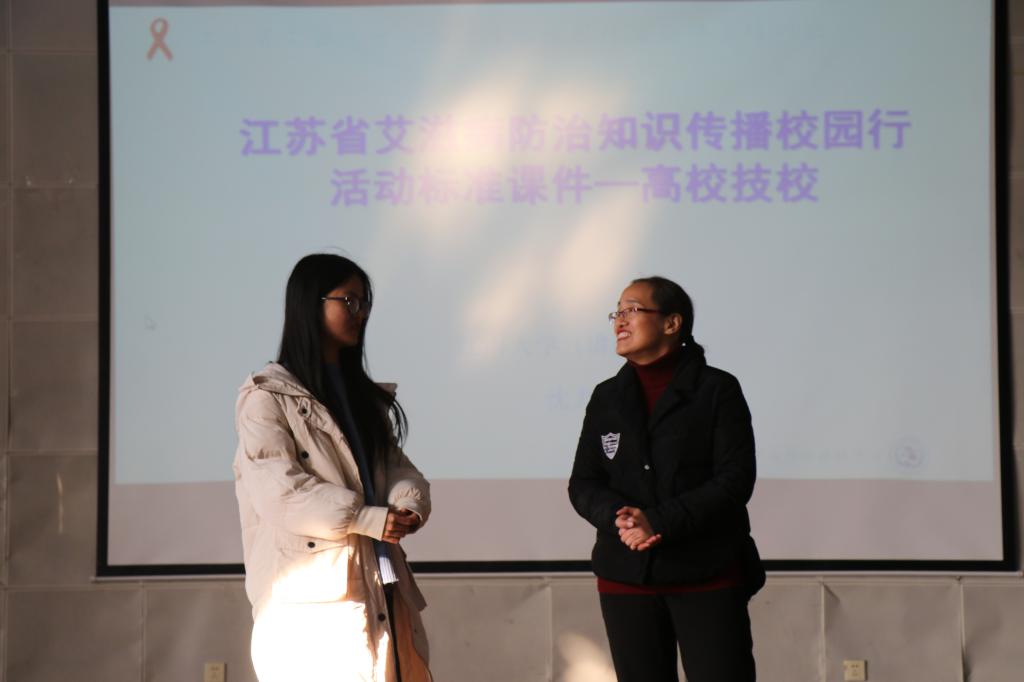 12月12日下午,由学生工作处、校团委和校医院联合举办的《防艾校园行》健康教育讲座纺织服装学院分场,在纺服学院C区表演厅举办。江南大学校医院副主任医师沈力晔医生应邀作专题讲座,来自设计学院、机械学院、环土学院、理学院、法学院以及纺服学院的300余名学生聆听了讲座。