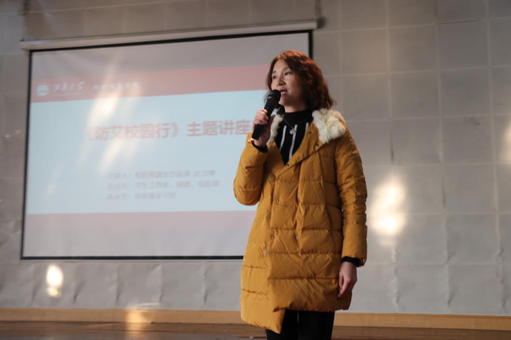 讲座正式开始前,学生工作处副处长单筱婷强调了本次活动的重要性与意义。她表示,近年来艾滋病感染者在高校青年学生中增长速度较快,对青年学生的身心健康和大学校园的和谐稳定构成严重威胁。《防艾校园行》系列讲座的目的是通过倡导青春健康的生活理念,引导大学生树立正确的人生观、价值观、恋爱观,提高广大学生的艾滋病自我防范意识和技能。