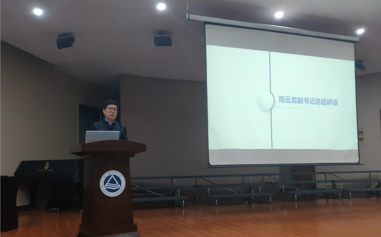 最后周云龙副书记对同学们提了三点期望:一是,要有坚定的理想信念、高尚的道德情操、宽广的胸怀和精益求精的工匠精神;二是,要“格物致知”,“格物”就是认识研究万事万物,刻苦学习,深入研究,“致知”就是总结获取知识的方法,而后在修身、齐家、治国、平天下上持续用力,久久为功;三是,要积极参加社会实践,能正确认识新时代中国特色和国际比较,关注国计民生,树立正确的世界观。